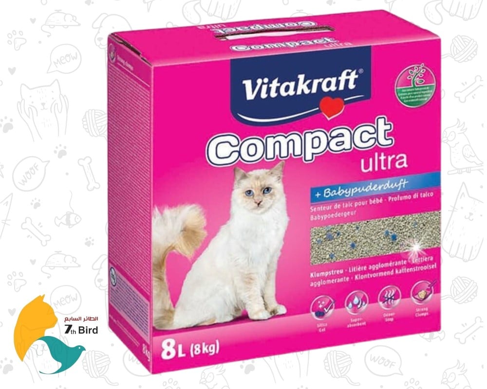 يحتوي الرمل الطبيعي من فيتاكرافت للقطط على بنتونايت (طين طبيعي) يحتوي على هلام السيليكا وهو مضاد للبكتيريا ويعطي نضارة صحية ورائحة عطرية ذات قدرة عالية على امتصاص السوائل والروائح بسرعة تفوح منها الروائح ويمنع نمو البكتيريا بشكل اقتصادي للغاية بسبب قدرتها لعمل كتل من النفايات وبالتالي استهلاك أقل ب 5 مرات من الرمل الذي لا يشكل كتل