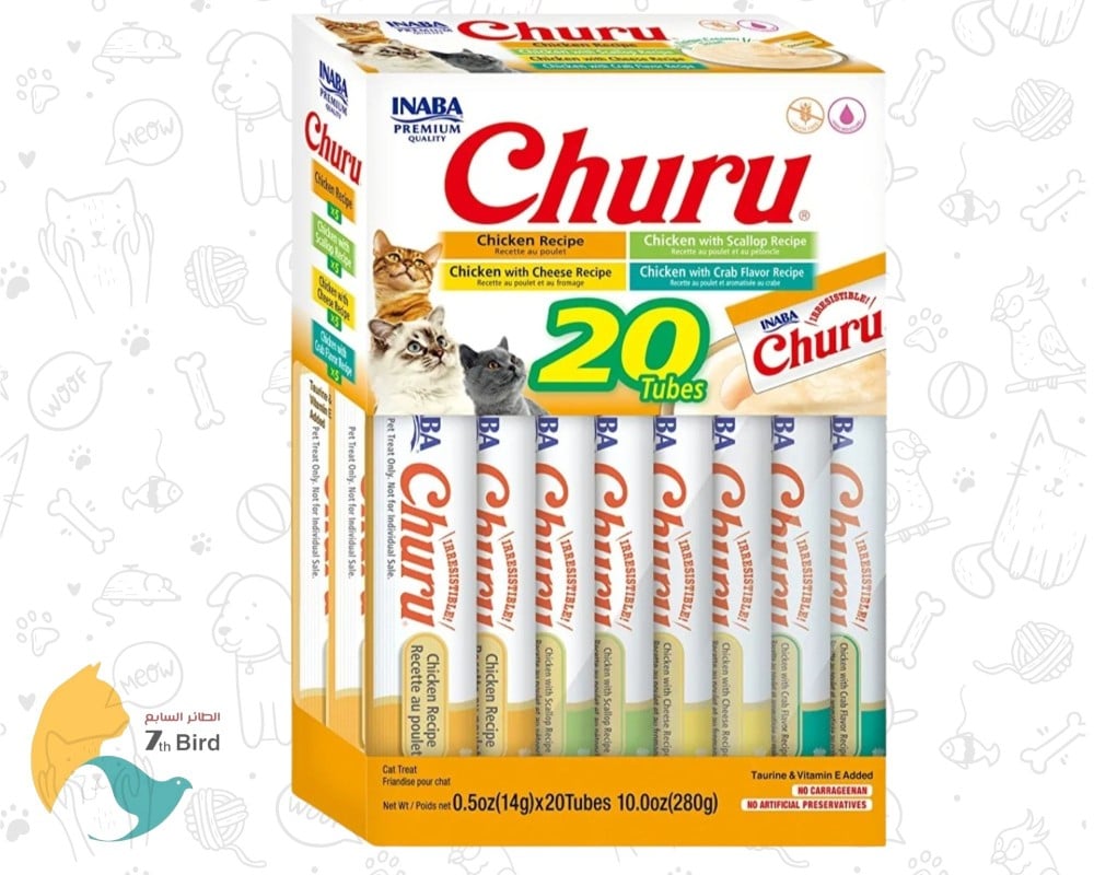 منتجات Churu Lickable Creamy Purée Natural Cat مصنوعة من مكونات عالية الجودة . تحتوي على 91٪ رطوبة و 6 سعرات حرارية فقط لكل أنبوب. هذا هو عُشر السعرات الحرارية في علاجات القطط الجافة التقليدية وأكثر من 1000 مرة من الرطوبة (8٪ مقابل 91٪ رطوبة). بالإضافة إلى ذلك ، أضفنا أيضًا مادة التورين للمساعدة في الرؤية والهضم وصحة القلب ، بالإضافة إلى فيتامين E للمناعة ومستخلص الشاي الأخضر لمضادات الأكسدة الطبيعية. ما الذي ينقصهم؟ إنها خالية من الحبوب وخالية من المواد الحافظة وخالية من الكاراجينان وخالية من الألوان الاصطناعية ، مما يجعلها علاجًا للقطط يمكنك الشعور بالرضا تجاه إطعامه. صُممت لتتم إطعامها يدويًا ، ويمكنك استخدامها للمساعدة في علاج القطة الداخلية المدللة. يجعل Inaba Churu وقت الوجبات الخفيفة ممتعًا لك ولأصدقائك القطط.
