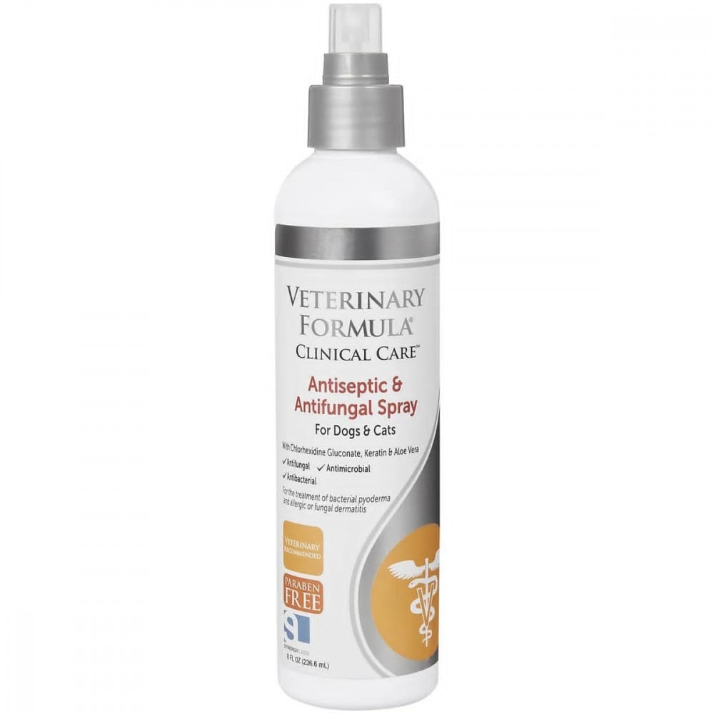 بخاخ طبي مطهر ومضاد للفطريات للكلاب والقطط. يزيل الروائح الكريهة بفعالية ويساعد في تخفيف الالتهابات الجلدية الفطرية والبكتيرية مثل التهاب وتقيح الجلد. الأعراض: احمرار -إفرازات كريهة الرائحة من الآفات -بقع جلدية تميل للغمقان -حكة -بثور-سقوط الشعر- سِمنة/تقشر في الجلد. المسببات: الجروح -أمراض الغدد الصماء مثل فرط نشاط الغدة الدرقية والحساسية من البراغيث أو مكونات الطعام. التهابات بكتيرية. تقيح الجلد. التهابات فطرية
