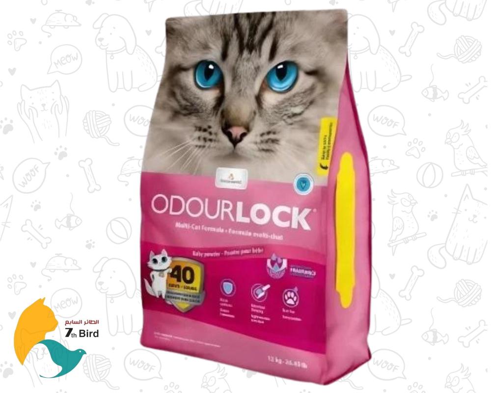 يتم إنتاج رمل OdourLock برائحة بودرة الأطفال من طين عالي الجودة، نقي وطبيعي 100%،آمن للجهاز التنفسي للإنسان والقطط،
