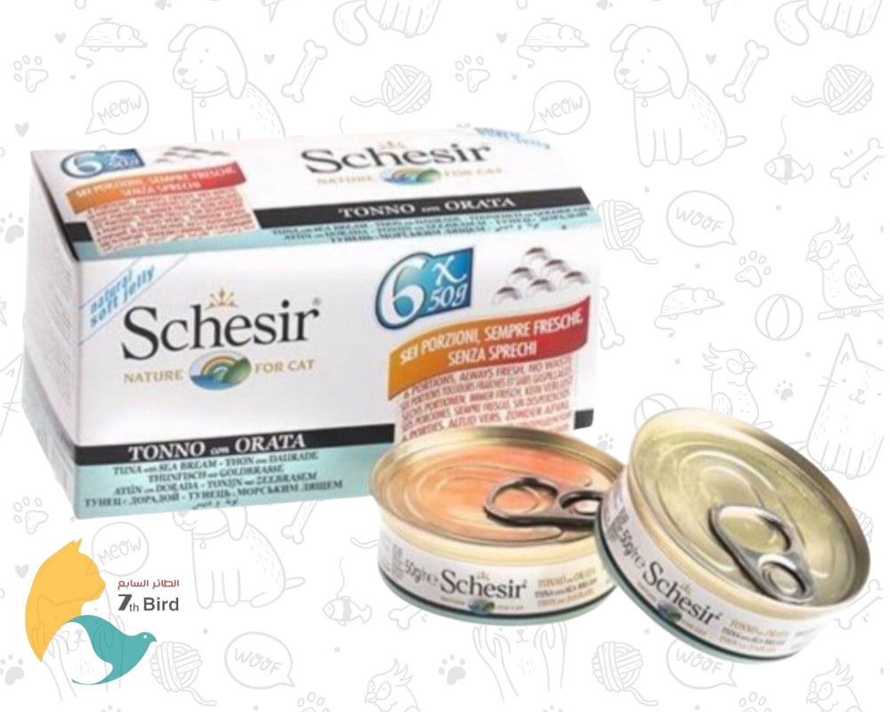 شيزر معلبات التونا مع سمك الدنيس طعام رطب عالي الجودة للقطط التي تأكل وجبات صغيرة أو تتبع حمية غذائية , منتقى بعناية من اجود اجزاء التونا المطبوخة بالبخار والمعالج يدوياً ,
