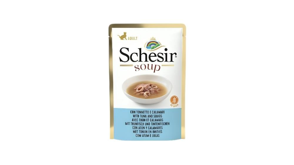 شيزر اظرف شوربة التونا البرية مع الحبار طعام رطب تكميلي عالي الجودة للقطط البالغه. يمكن اضافتة على الطعام الجاف لتحسن تجربة قطتك وتنويع الطعام بالإضافة الى انها تعتبر فاتحة للشهية