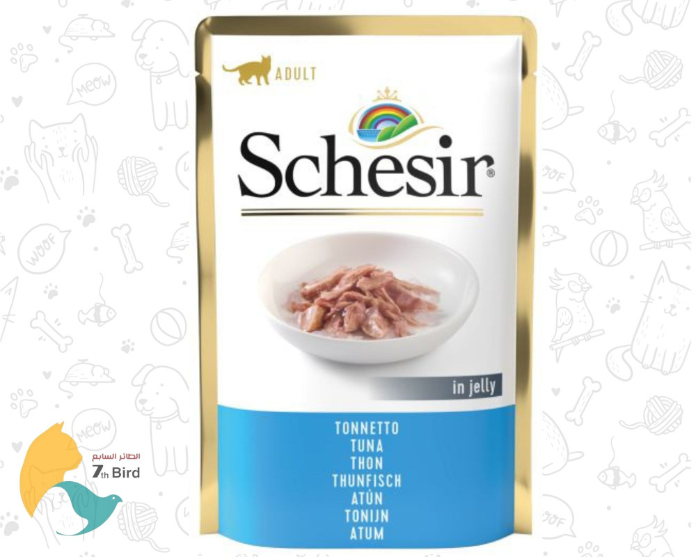 تعتمد وصفة Schesir هذه على شرائح حقيقية من التونة اللذيذة في شكل جيلي ، لإرضاء القطط التي تفضل طعم البحر