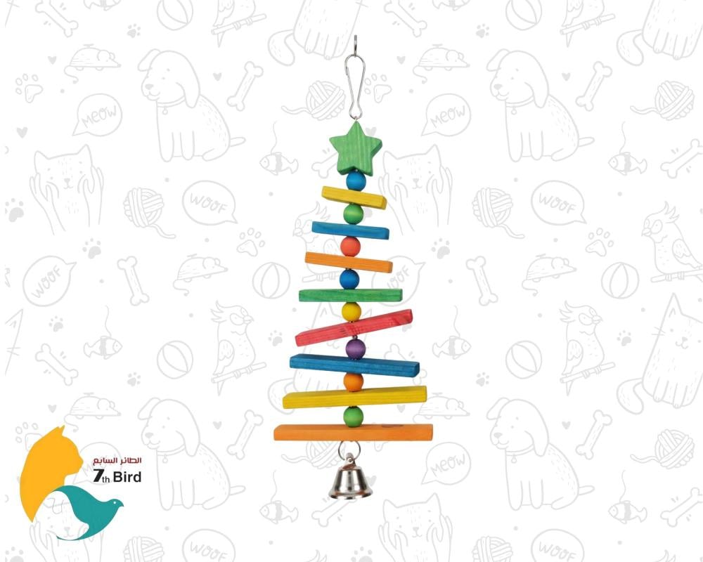 لعبة تفاعلية بشكل شجرة خشبية ملونة مع جرس للطيور من سيفن بيرد