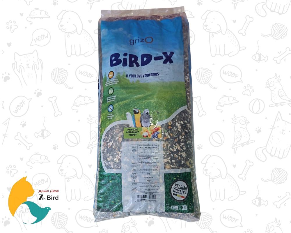 تم تصميم Bird-x Parrot + Nuts Mix كغذاء أساسي لأنواع الببغاء الكبيرة (الجابون الرمادي والأزرق والأصفر الببغاء - اليكتوس الأكبر).