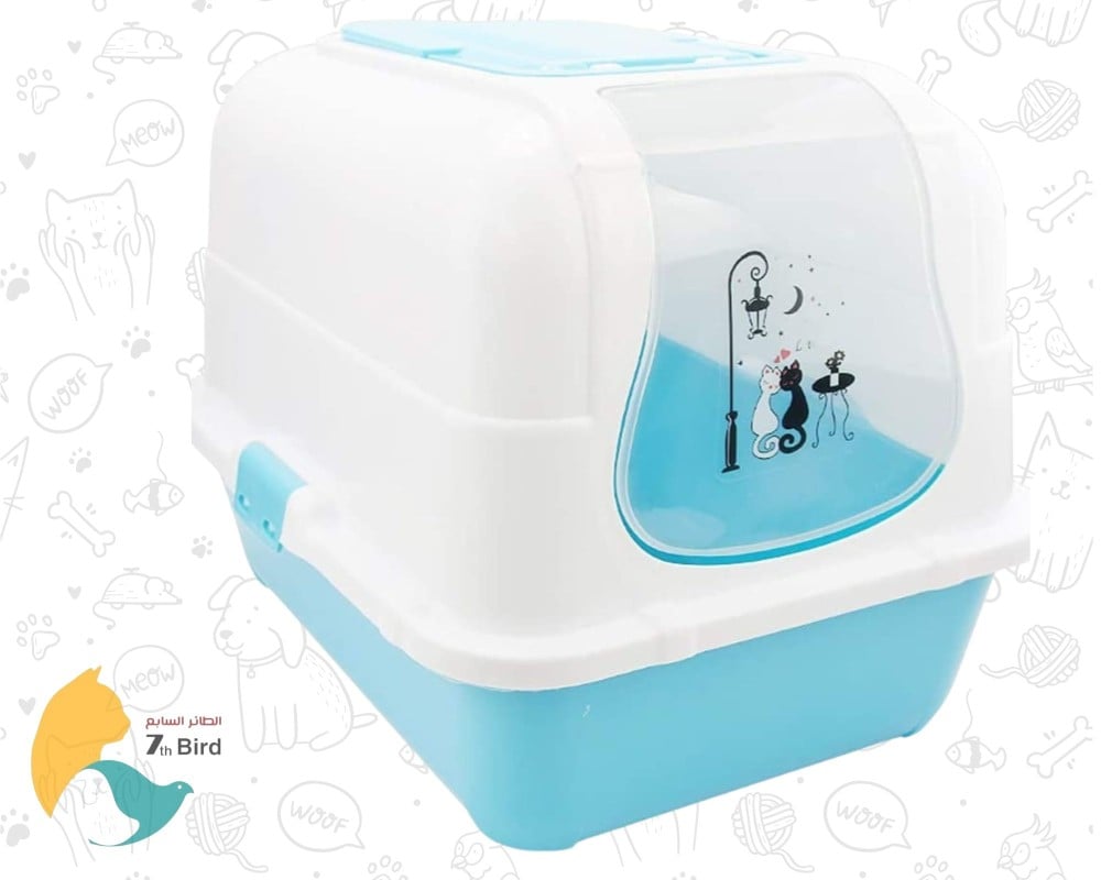 -> من هذه الكلمة ، يوجد حمام للقطط مصمم على شكل صندوق مغلق ، لذلك يمكنك أن تطمئن إلى أنك لن تقلق بشأن انسكاب الرمل أو منتجات النظافة على الأرض.