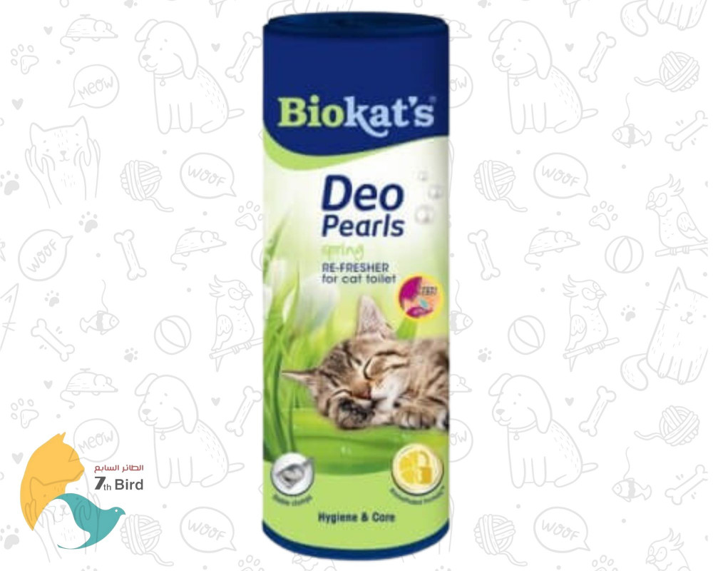 With Deodorant Pearls Spring you can freshen up your litter box as often as you like. Immerse yourself in our world of fragrances and let yourself be enchanted by the special blend of freshly cut grass and dew drops in the morning. Fresh herbs, white flowers and a touch of musk remind us of a wonderful spring. Deo Pearls Spring features the AromaProtect Formula™. This reliably seals in unpleasant odors and releases our spring-scented fragrance. Developed by cat hygiene experts, Biokat's AromaProtect Formula™ ensures long-lasting odor control! In addition, Deodorant Pearls Spring increases clump formation and thus allows you to use your usual cat litter for a longer period. Recommended dosage: Spread evenly over litter as desired.