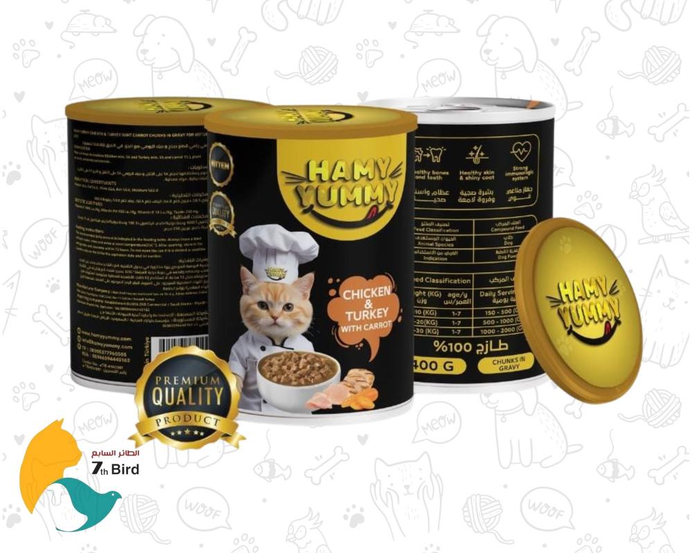 Hamy Yummy Wet Cat Food with Chicken and Turkey Pieces with Carrots in Gravy 400g