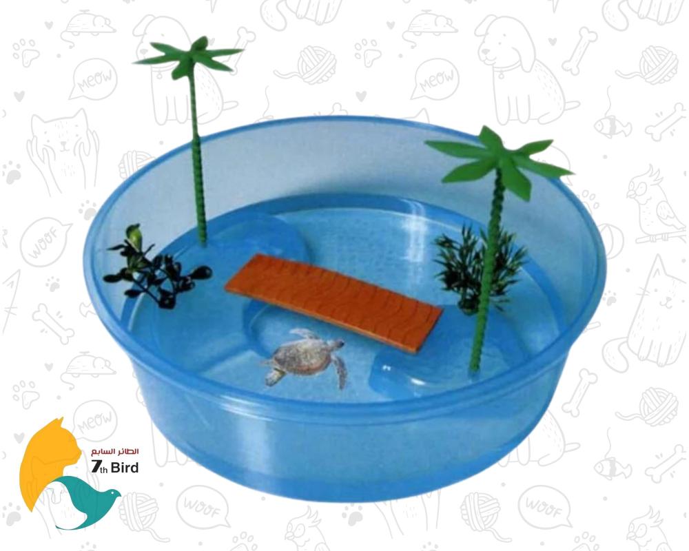 - At the bottom there are molded depressions so that the turtle has the opportunity to rest on dry land and swim.